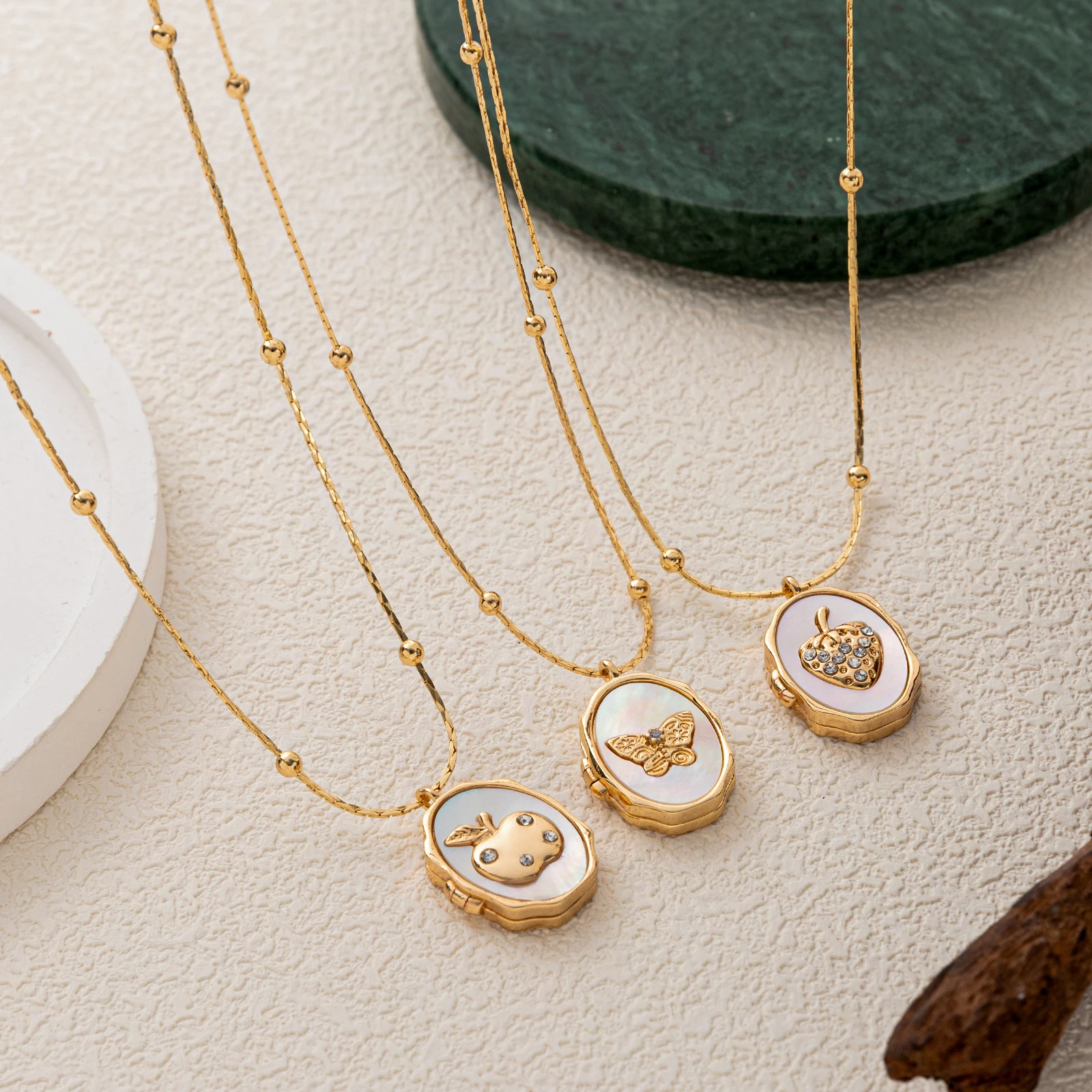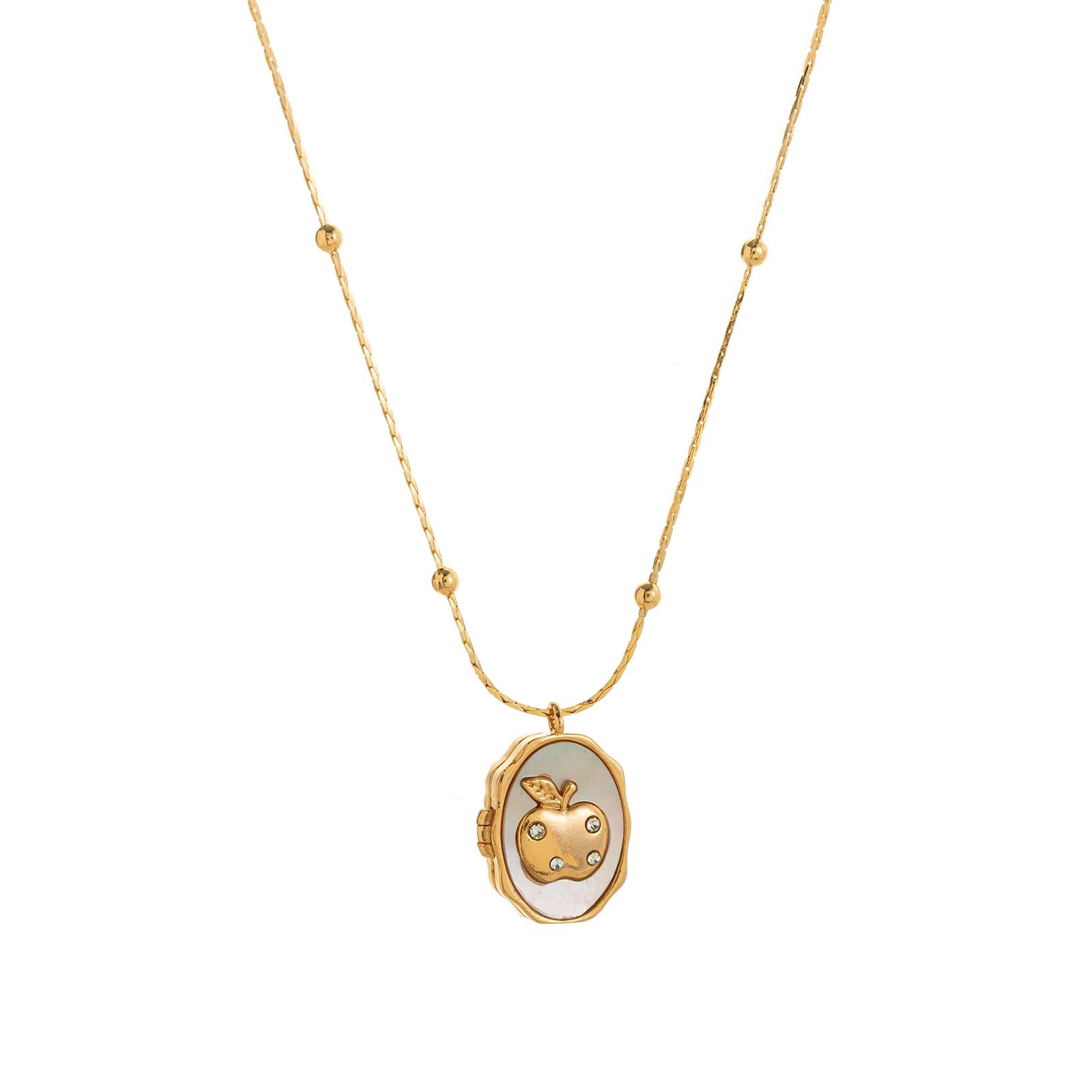 18K Gold Mother of Pearl Pendant Necklace Dainty Beaded Chain Charm Necklace for Women Gift
